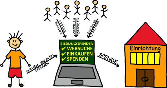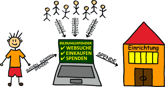 Ihr könnt uns nun über die Seite BILDUNGSSPENDER unterstützen und das mit einem Online-Einkauf bei über 6.000 Partner-Shops und Dienstleistern ohne Mehrkosten und ohne Registrierung - egal ob Mode, Technik, Büromaterial oder Reisen.